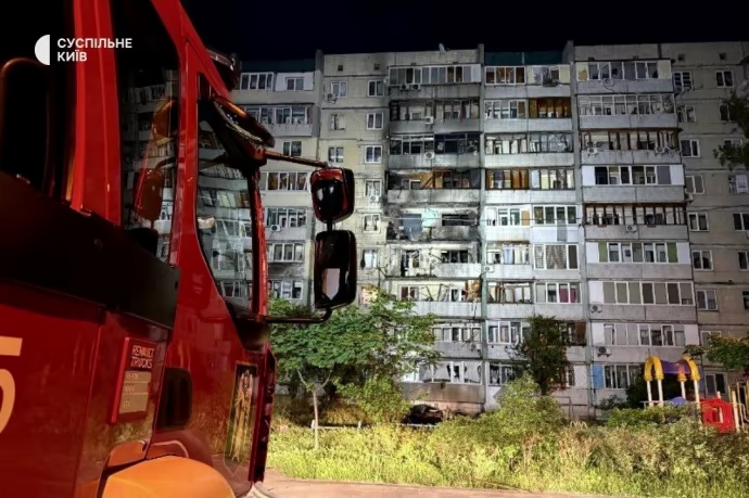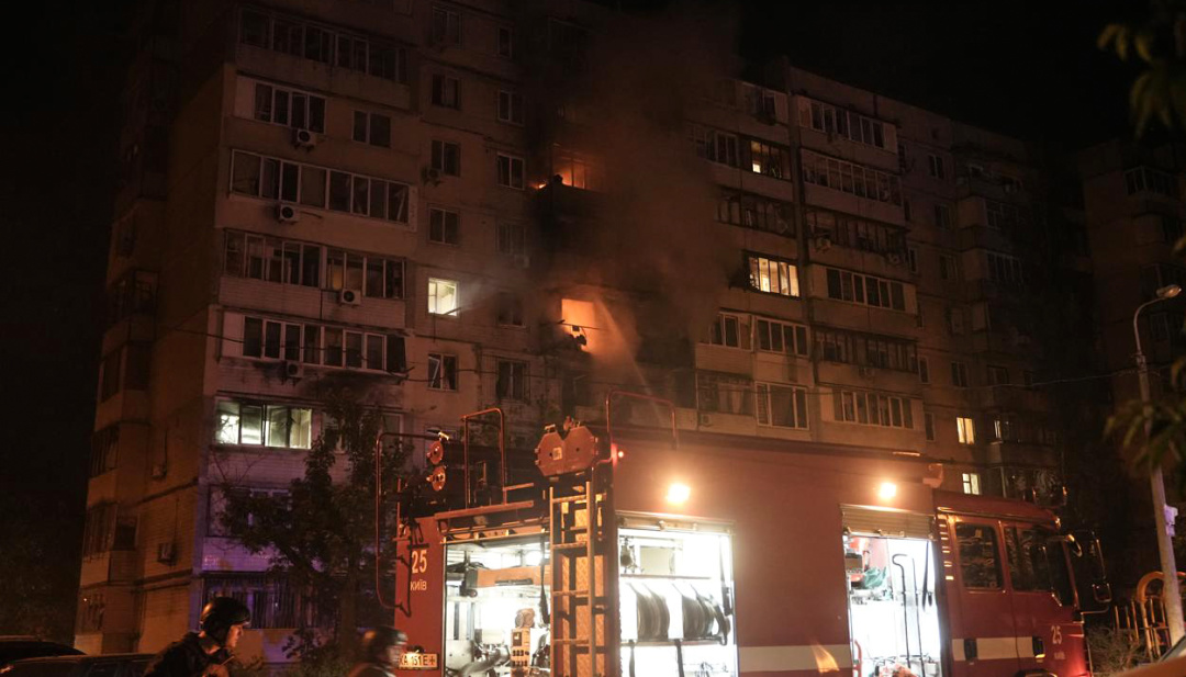 In mehreren Stadteilen Kyjiws werden die Folgen eines weiteren feindlichen Drohnen- und Raketenangriffs beseitigt.