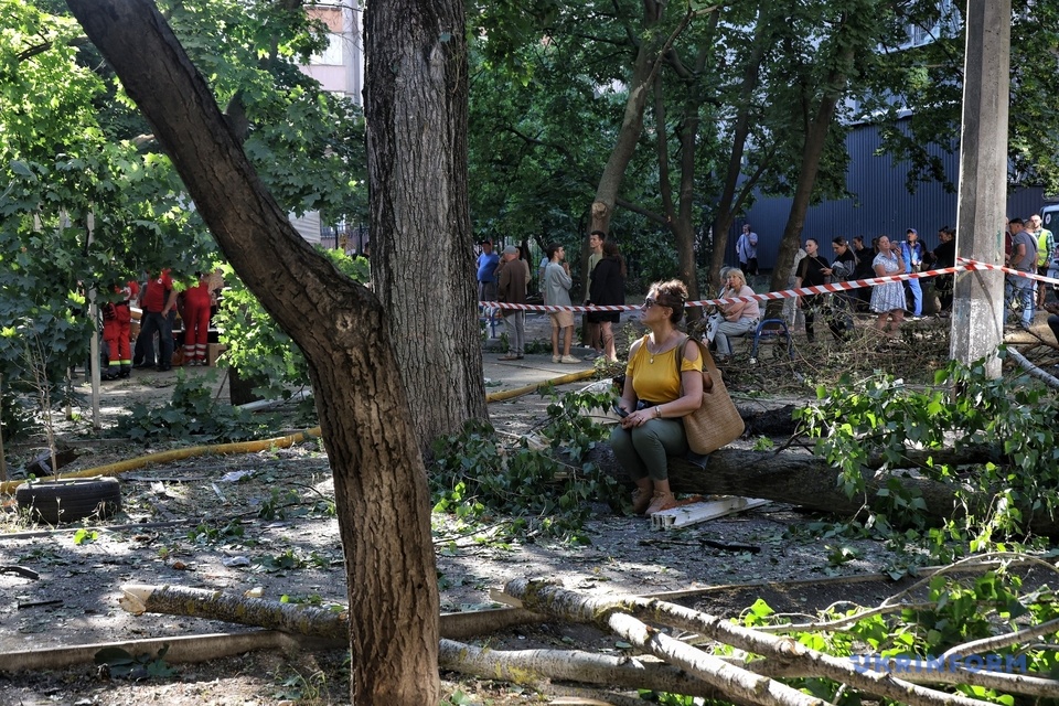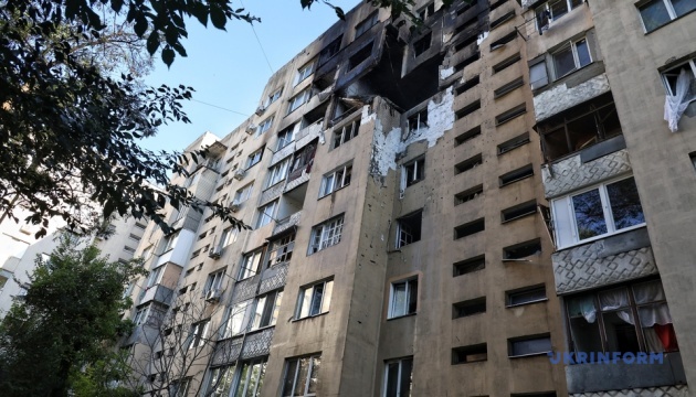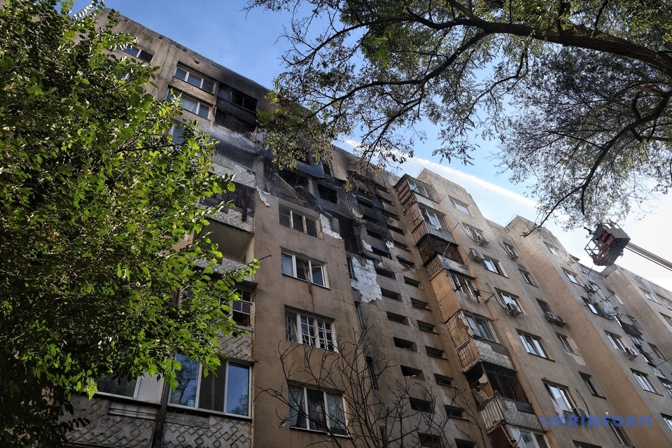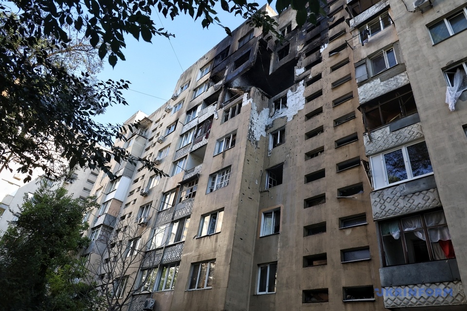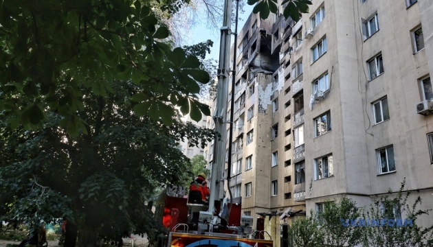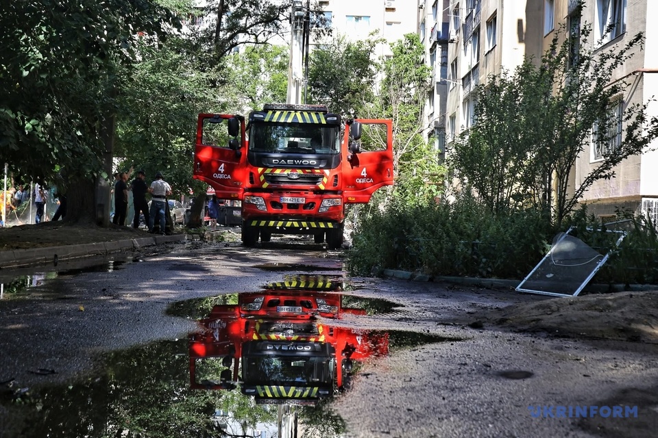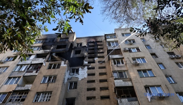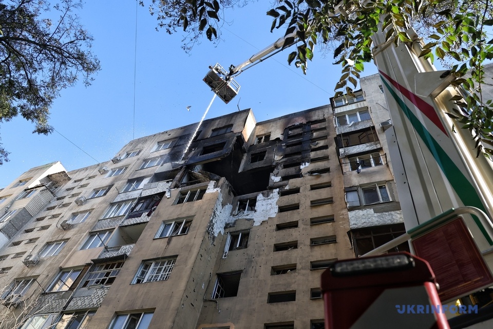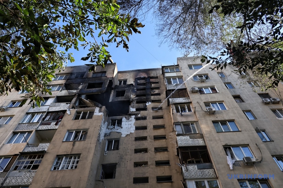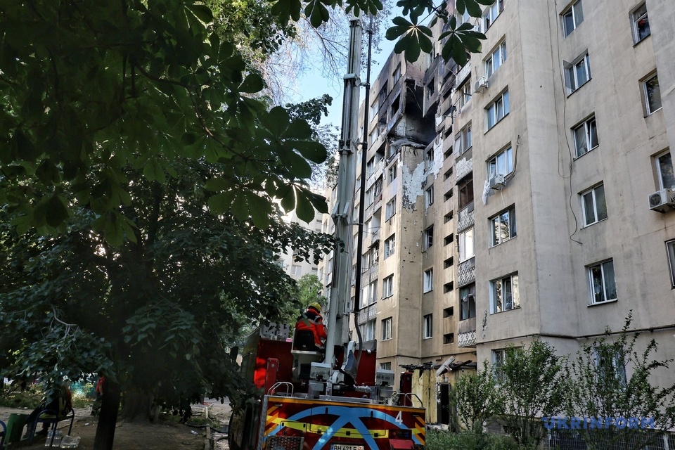Marina Awerina, Sprecherin des Staatskatastrophenschutzdienstes in der Region Odessa, erklärte vor Journalisten, dass nach dem Treffer ein Großbrand im Gebäude ausgebrochen sei; Wohnungen vom 7. bis zum 9. Stock standen in Flammen.