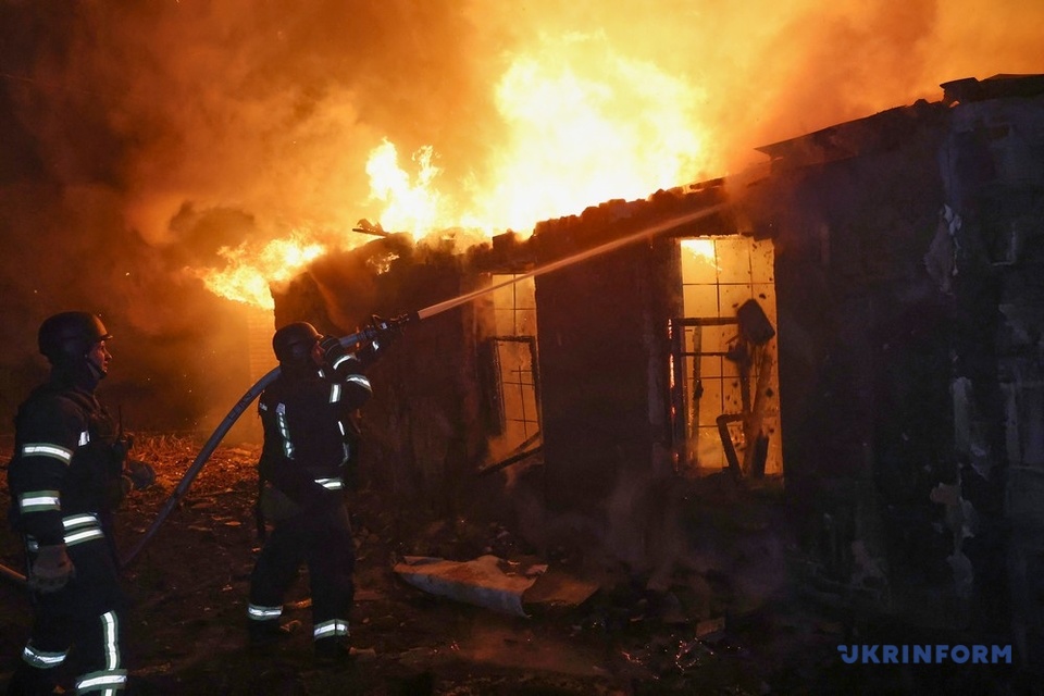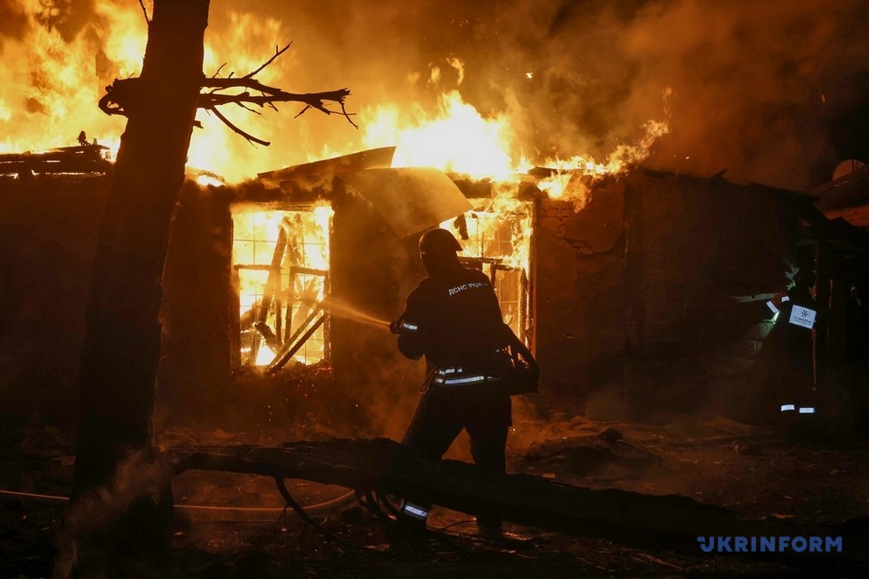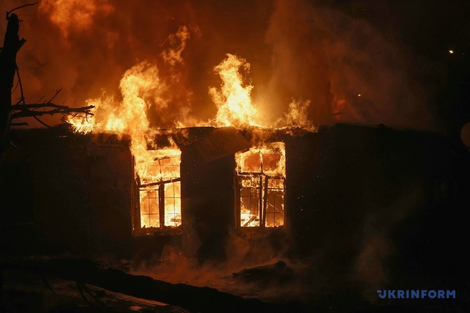 Russische Invasoren griffen in der Nacht zum 24. November mit Drohnen ein Agrarunternehmen in Moskaliwka an. Die Farm brannte. Etwa 60 Schweine kamen ums Leben.