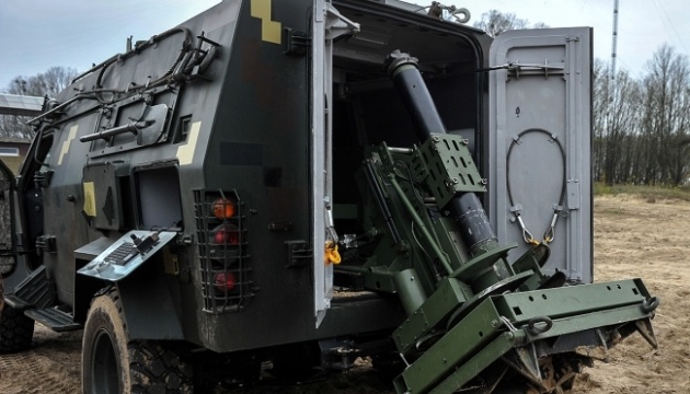 Das System wurde Turtschynow zufolge von ukrainischen Produzenten auf der Basis des Panzerfahrzeugs „Bars – 8“ gebaut. Es verfügt über 60 Schuss Bereitschaftsmunition und wurde von drei Soldaten bedient.