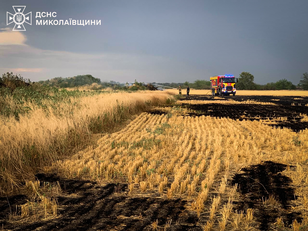 Das Feuer zerstörte 70 Hektar Weizen in der Region Mykolajiw.