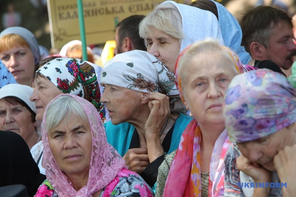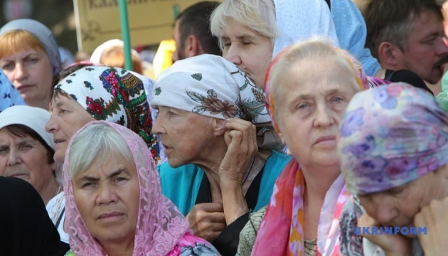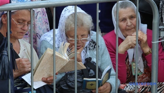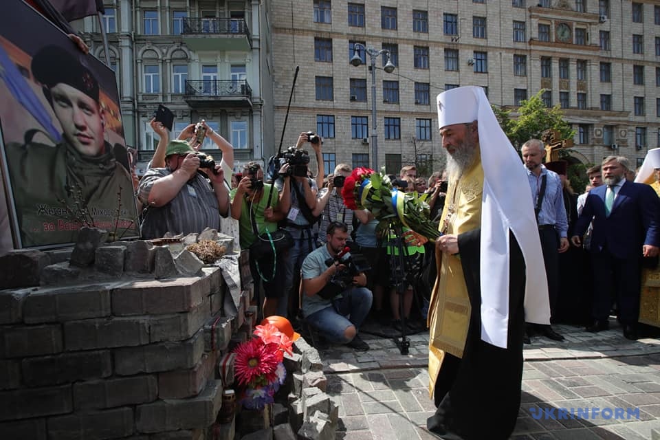 Nach einem Gottesdienst am Wolodymyr -Hügel im Stadtzentrum zogen die Gläubigen zum Kyjwer Höhlenkloster. Das Gottesdienst zelebrierte das Kirchenoberhaupt Metropolit Onufrij.